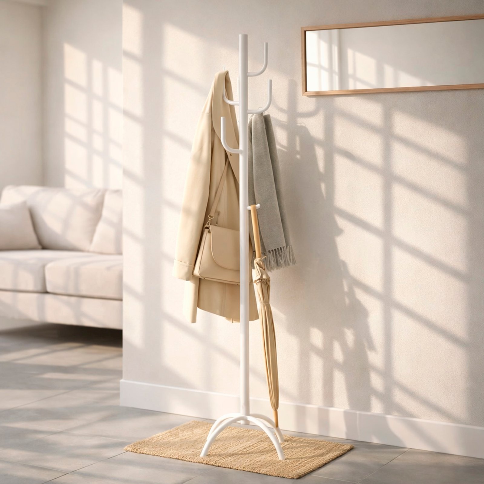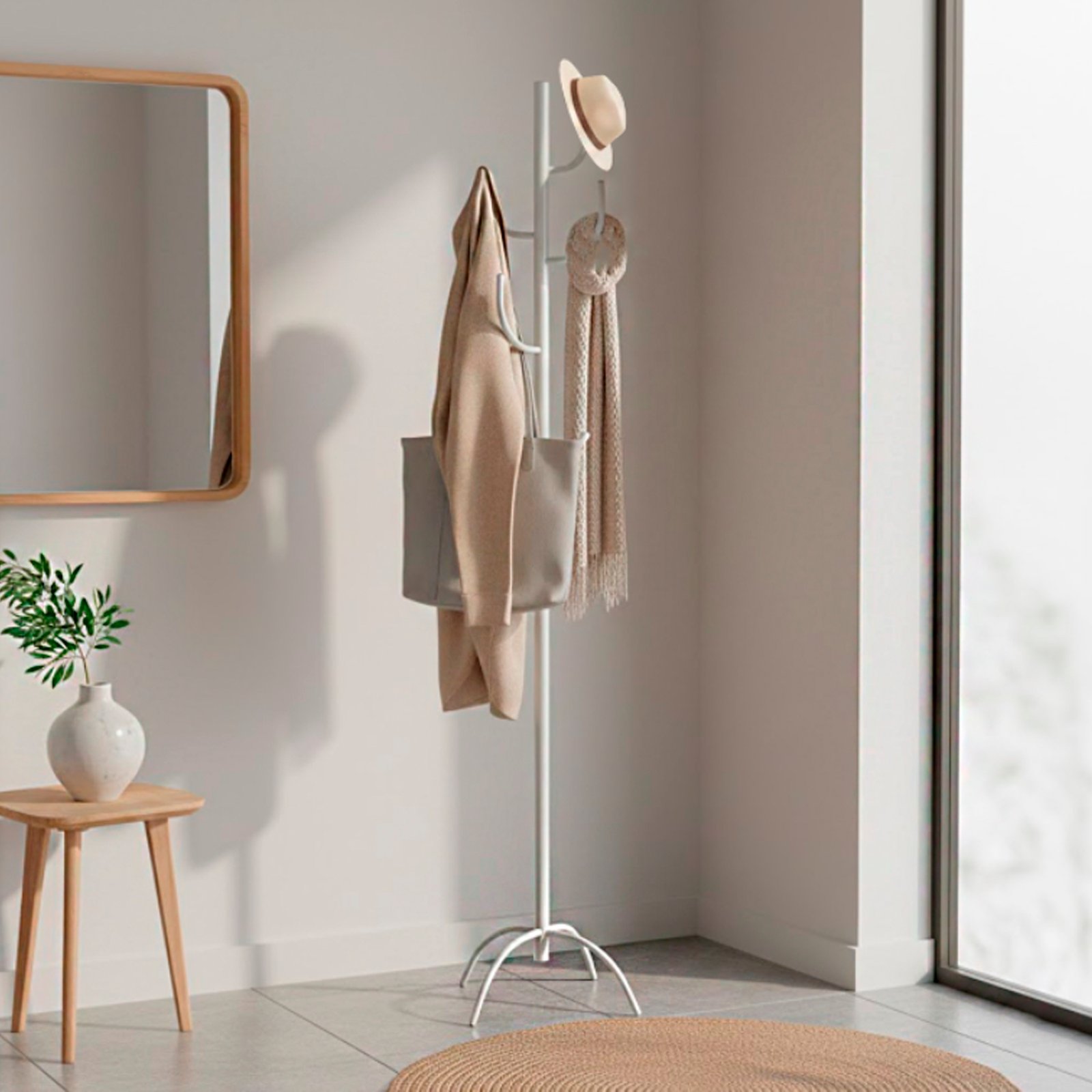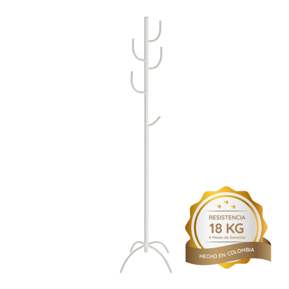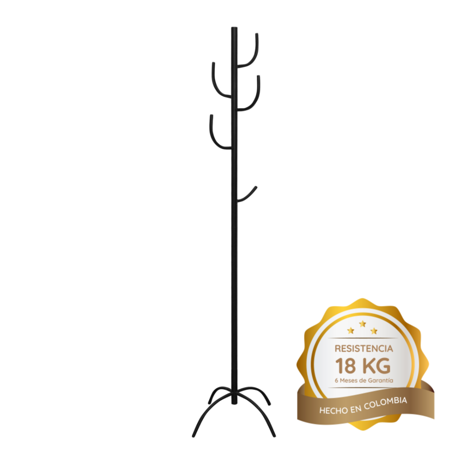 Perchero moderno y funcional con 5 perchas estratégicamente distribuidas. Soporta hasta 18 kg. Fácil de armar.