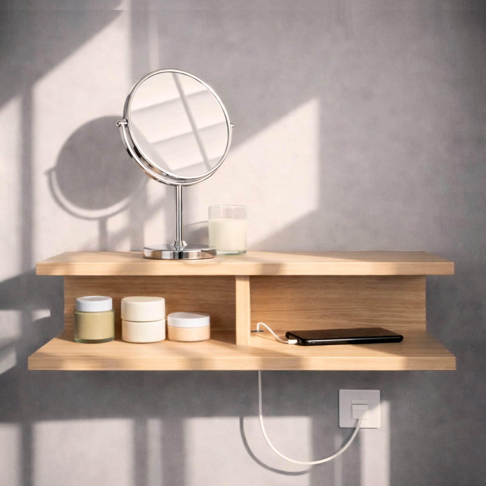 Repisa resistente en color arena o germany. Soporta hasta 12 kg. Fácil de armar e instalar.