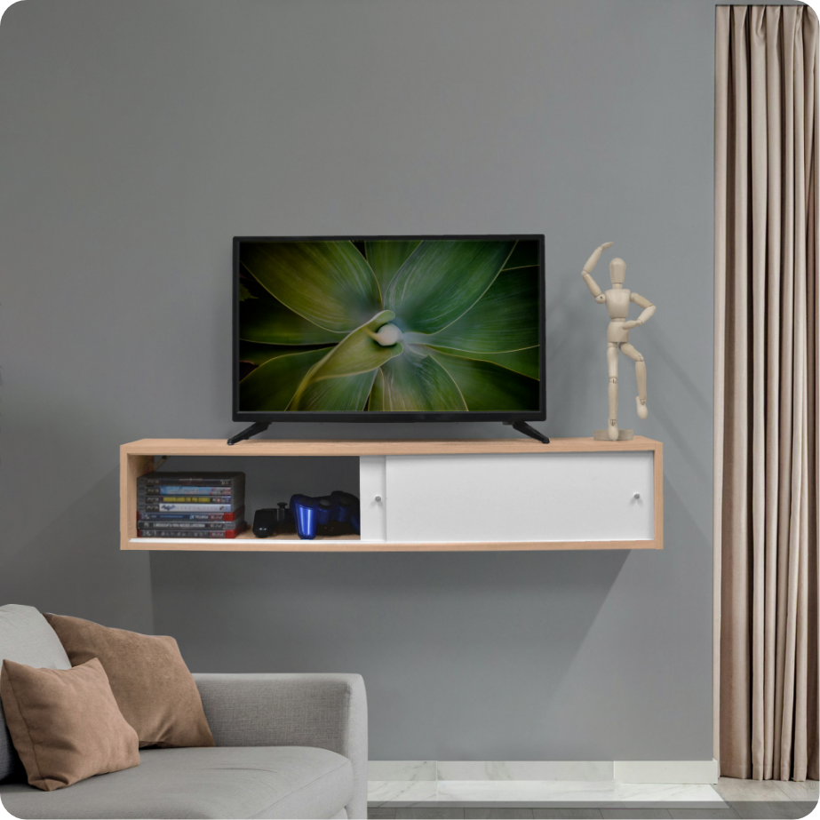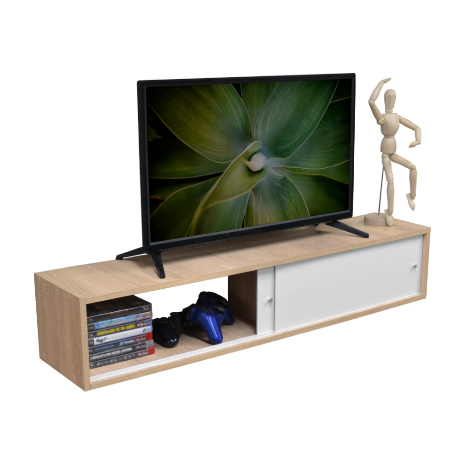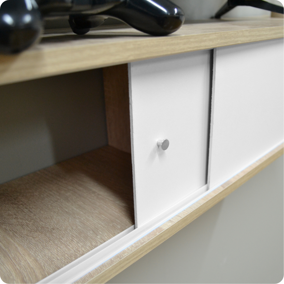 Diseño elegante con acabados blanco y germany que combinan con cualquier estilo de decoración. Soporta hasta 10 kg. Incluye puertas para mantener tus objetos protegidos y un pasacables integrado para gestionar dispositivos electrónicos de forma ordenada. ¡Perfecta para crear tu centro de entretenimiento ideal!