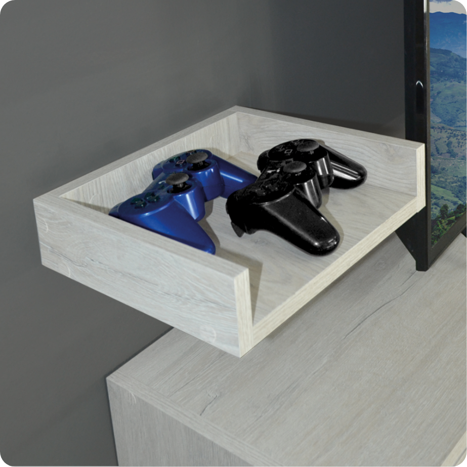 Repisa multiusos ideal para centros de entretenimiento. Soporta hasta 4 kg.