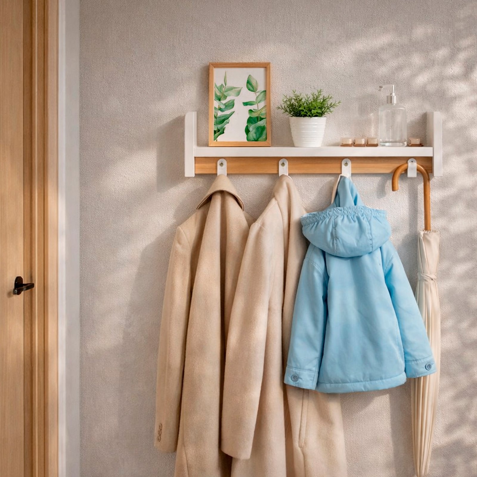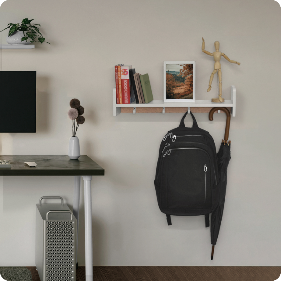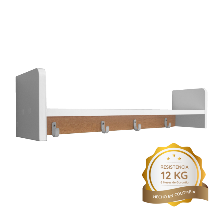 ¡Lleva el estilo y la funcionalidad a tu hogar! Nuestra Repisa Perchero combina lo mejor del diseño moderno con los mejores acabados, ofreciendo una solución práctica y elegante para organizar tus espacios. Ideal para libros, plantas, decoraciones o cualquier objeto esencial. Cuenta con 4 perchas para colgar prendas, bolsos o accesorios con facilidad. Diseño multifuncional: perfecto para entradas, salas o dormitorios, optimizando el uso del espacio con un toque de sofisticación.